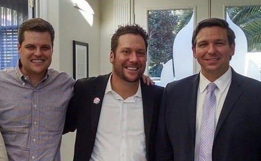 This is a state where Matt Gaetz somehow escaped charges in a case where he and his running-buddy Joel Greenburg Venmoed teenage hookers they allegedly shared. (Ew.) Gaetz and Greenberg are pictured below with some other guy: