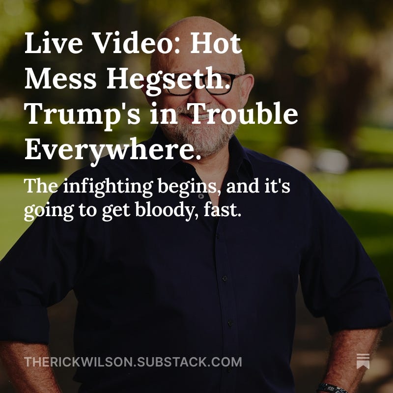 This is a trail balloon from Susie Wiles and J.D. Vance, trying to get a D.C. feeding frenzy in the press running to make Hegseth quit before he’s fired. Neither like Hegseth at all and for Vance, he wants to put Peter Thiel’s mark on the DOD, stat.