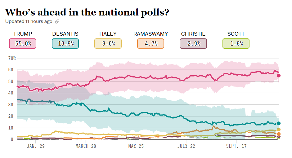 As far Haley? Congratulations, if her upward trajectory in polls continues. Instead of losing 81-19% in the primaries, she’ll cut to lead to 80-20%. OUTSTANDING!