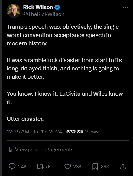 For days, I’ve been talking to reporters who told me what the campaign was telling them: “Trump’s going to deliver a different kind of speech.” “This isn’t going to be the same crazy stuff.” “He’s going to show us a softer, more reflective side of himself.” “This won’t be the same old speech, full of grievances and talk.”
