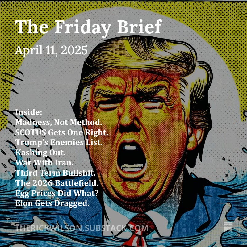 Inside: Madness, Not Method. The Supreme Court Gets One Right. Trump’s Enemies List. Kashing Out. War With Iran. Third Term Bullshit. The 2026 Battlefield. Egg Prices Did What? Elon Gets Dragged. Substack Finds. What I’m Reading. Scenes from the Home Front.