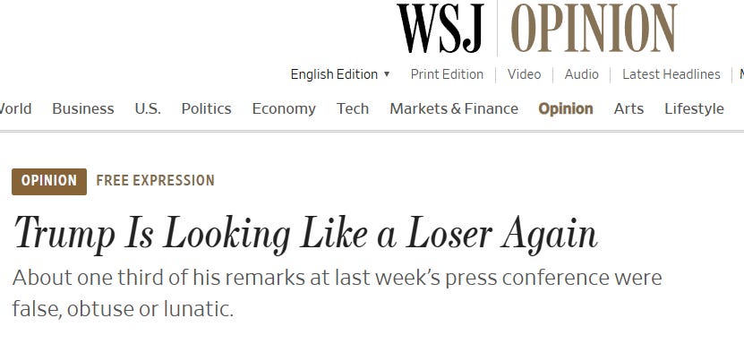 If Joe Biden had at any point during his campaign claimed that Donald Trump was Photoshopping thousands of people into a rally that the mainstream media had covered with their own eyes and cameras, the Wall Street Journal, Washington Post, and New York Times ed boards would have called for him to leave the race, and rightly so.
