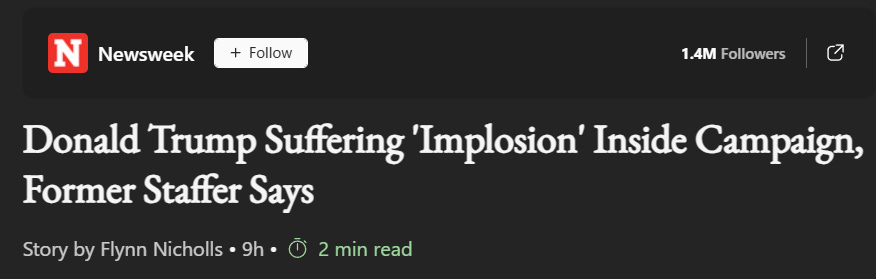 Trump‘s own quite obvious mental collapse is playing out in real time in front of our eyes. The news stories in the Times, Axios, and elsewhere in the past few days hit at the dysfunctional wetware between Trump’s ears, but even those are mediated by a degree of campaign spin.
