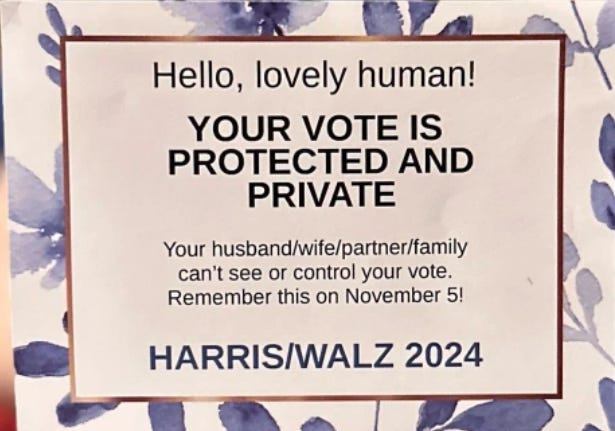 Our polling — and that of other folks as well — is starting to show that “silent Kamala” voter is out there: this is permission to do the right thing because America has wired the secret ballot deep in our political DNA.
